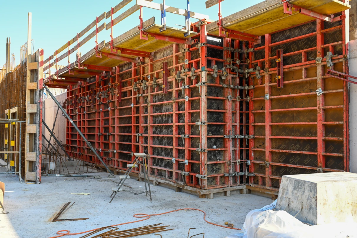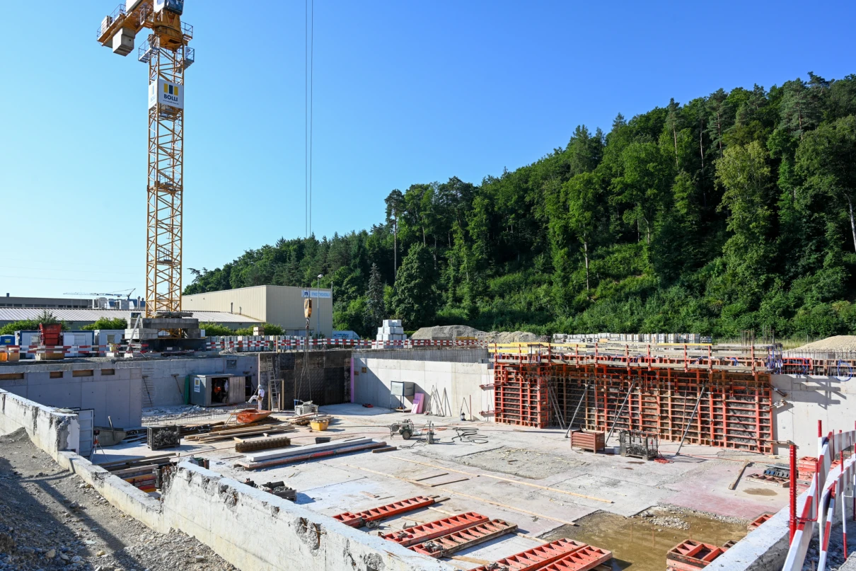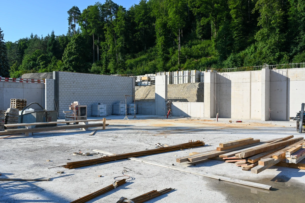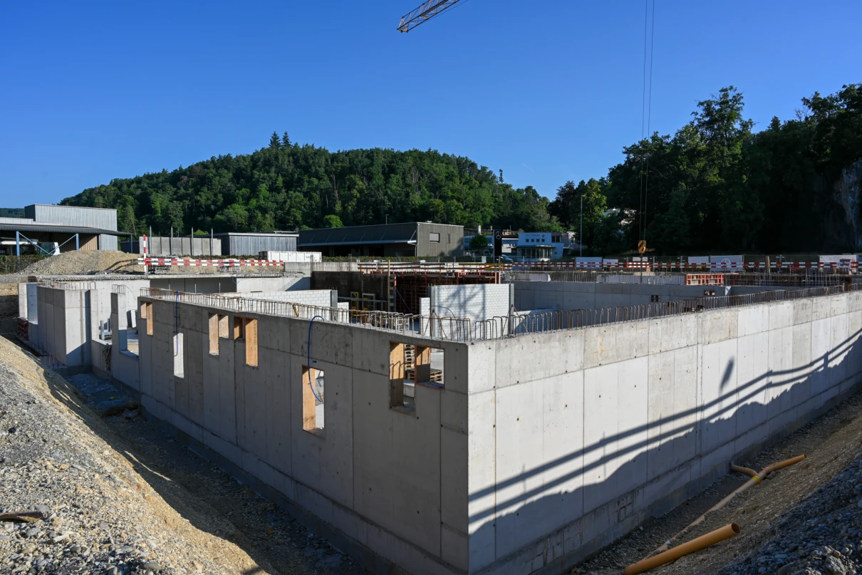 Die Kreuzgarage in Schaffhausen erhält einen kompletten Neubau in massiver Stahlbeton- und Mauerwerksbauweise. Eine Stahlkonstruktion prägt die moderne Fassade. Im Südwesten entstehen Bodenplatte und Wände neu und werden an die bestehenden Bauteile im Nordosten angebunden. Über den gesamten Grundriss wird die Decke über dem Untergeschoss erneuert. In den oberen Geschossen entstehen Treppenkern, Aufzugsschacht und Zwischendecken in Ortbeton – für eine langlebige und funktionale Gebäudestruktur.
