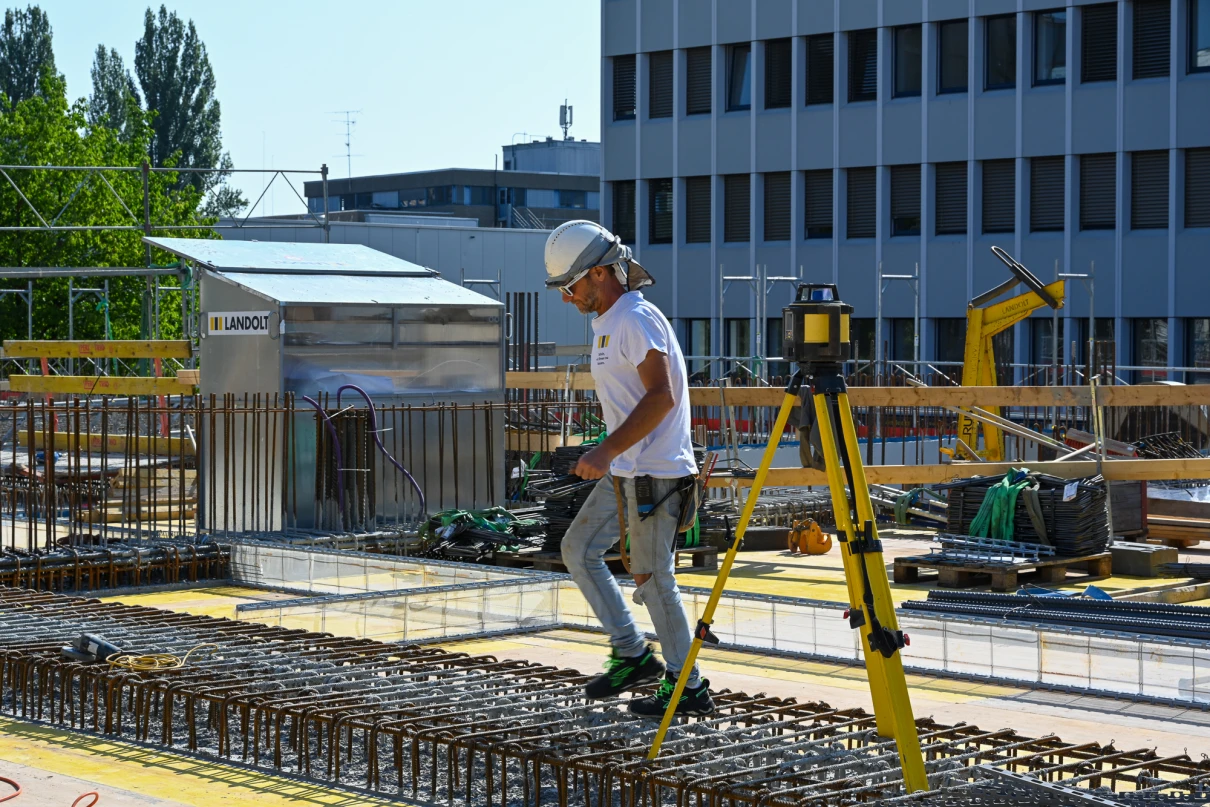 Die Verantwortung für die Bauausführung liegt bei Bauführer Silvan Roth, der gemeinsam mit Polier Niclas Stocker und seinem engagierten Team für einen reibungslosen, qualitativ hochwertigen Ablauf auf der Baustelle sorgt. Präzision, Verlässlichkeit und Teamarbeit sind gefragt – denn ein Bildungsbau wie dieser stellt höchste Anforderungen an Funktionalität, Sicherheit und architektonische Qualität.