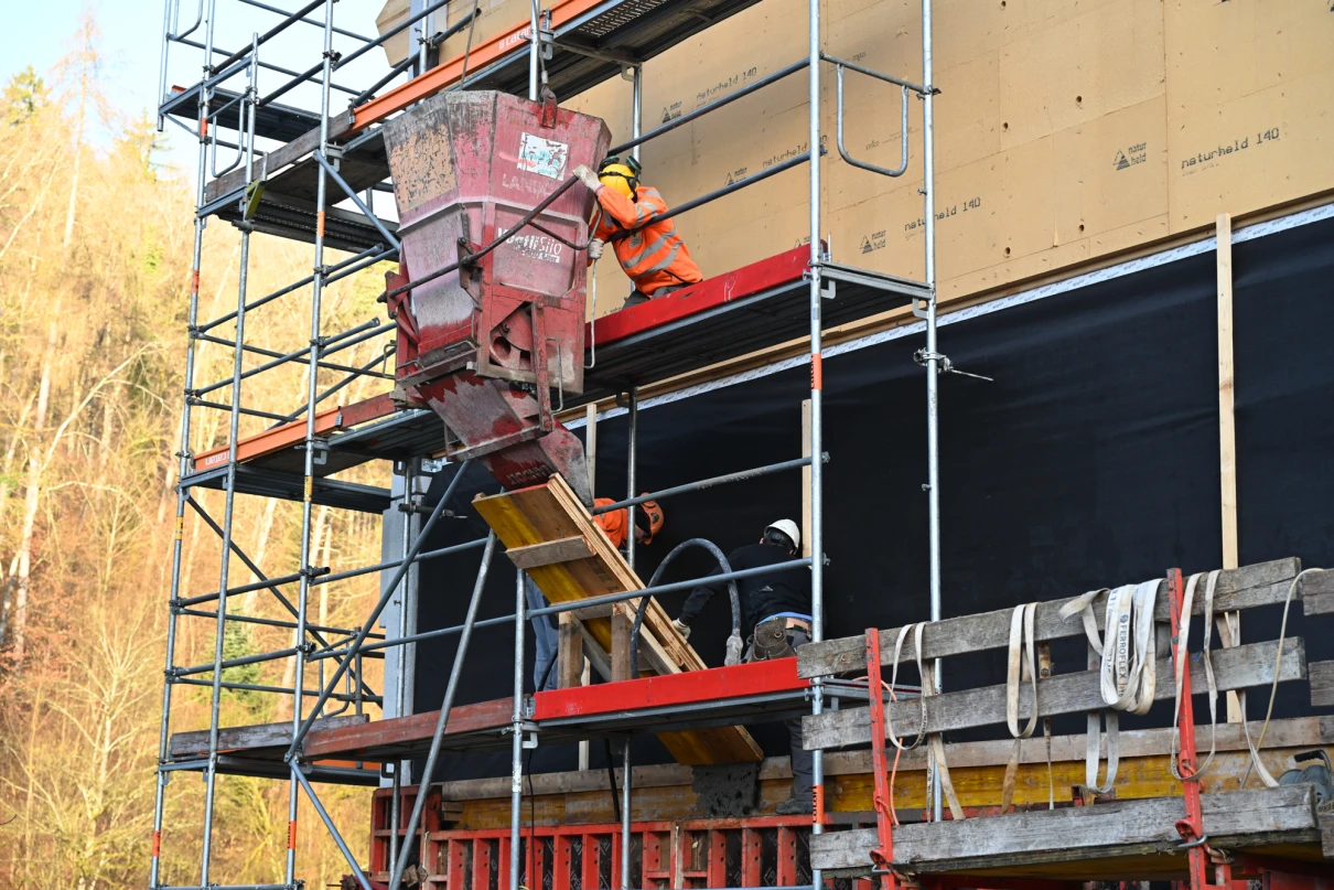 Die Betonbauarbeiten gelten als Grundlage für einen darauf aufbauenden Holzbau.