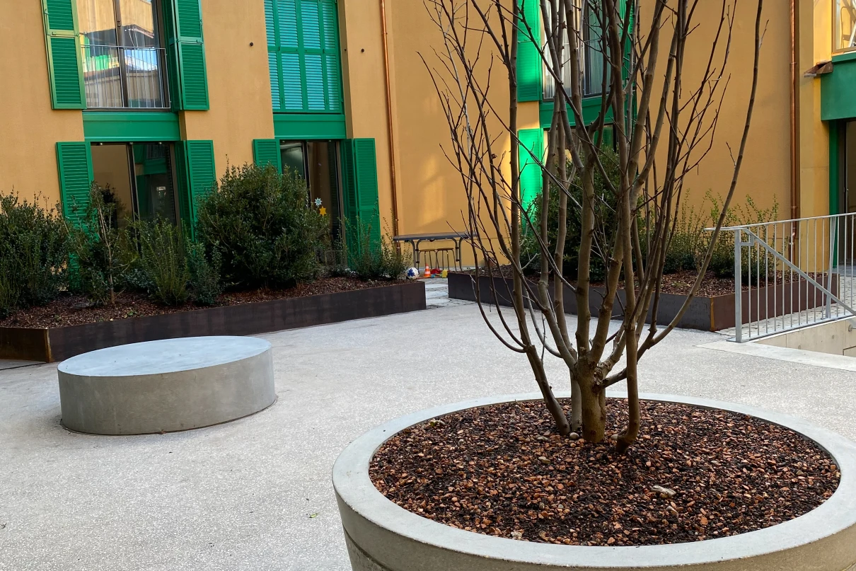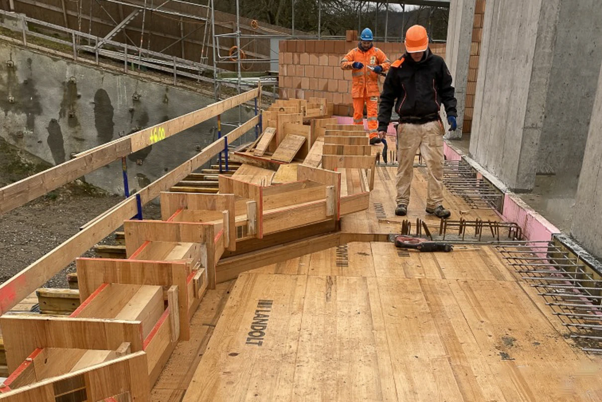 15 MFH mit 3. oder 4. Geschossen. Aussenmauerwerk mit Wärmedämmstein als nicht tragende Funktion ausgeführt. Anspruchsvoller Sichtbeton bei Fassade, Treppenhäuser, Rampeneinfahrt und Stützmauer Typ 4.1.