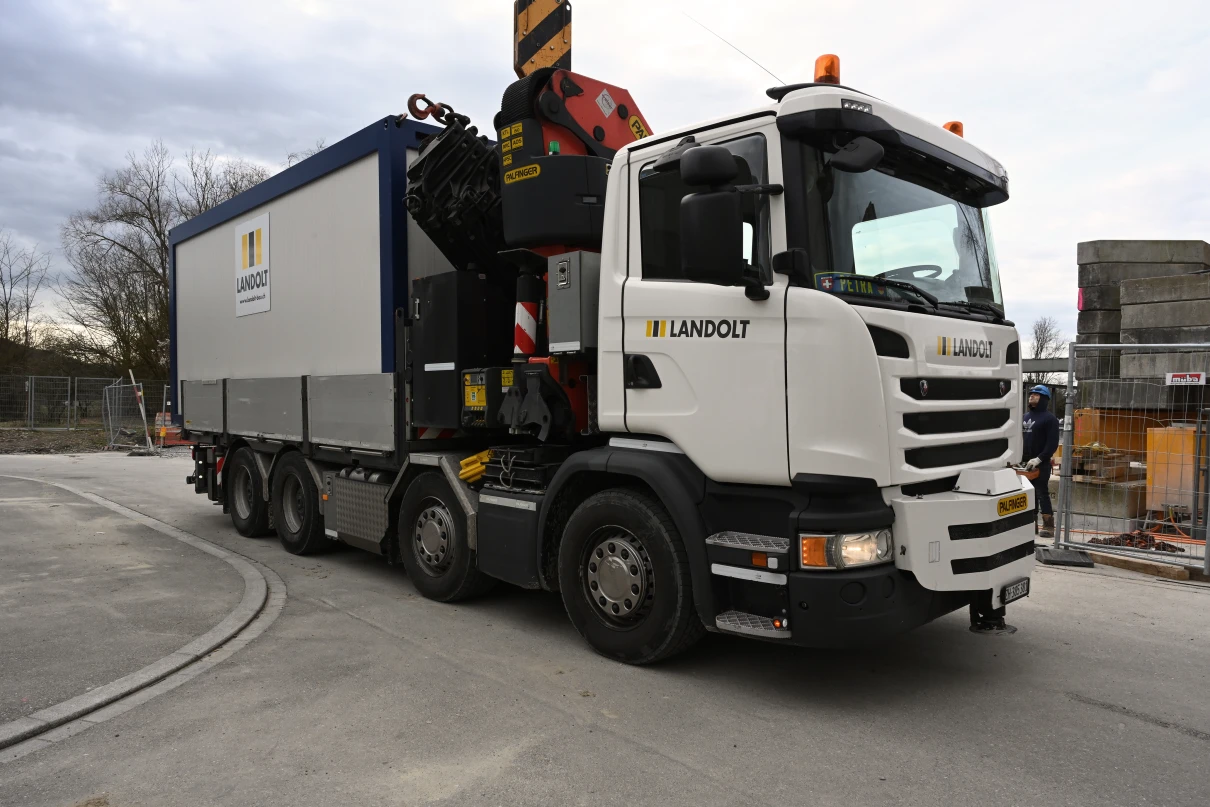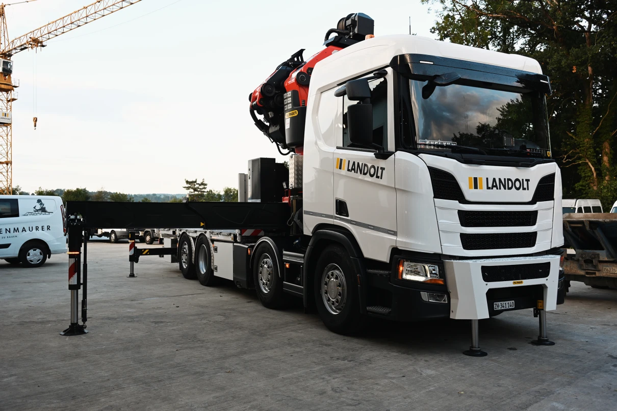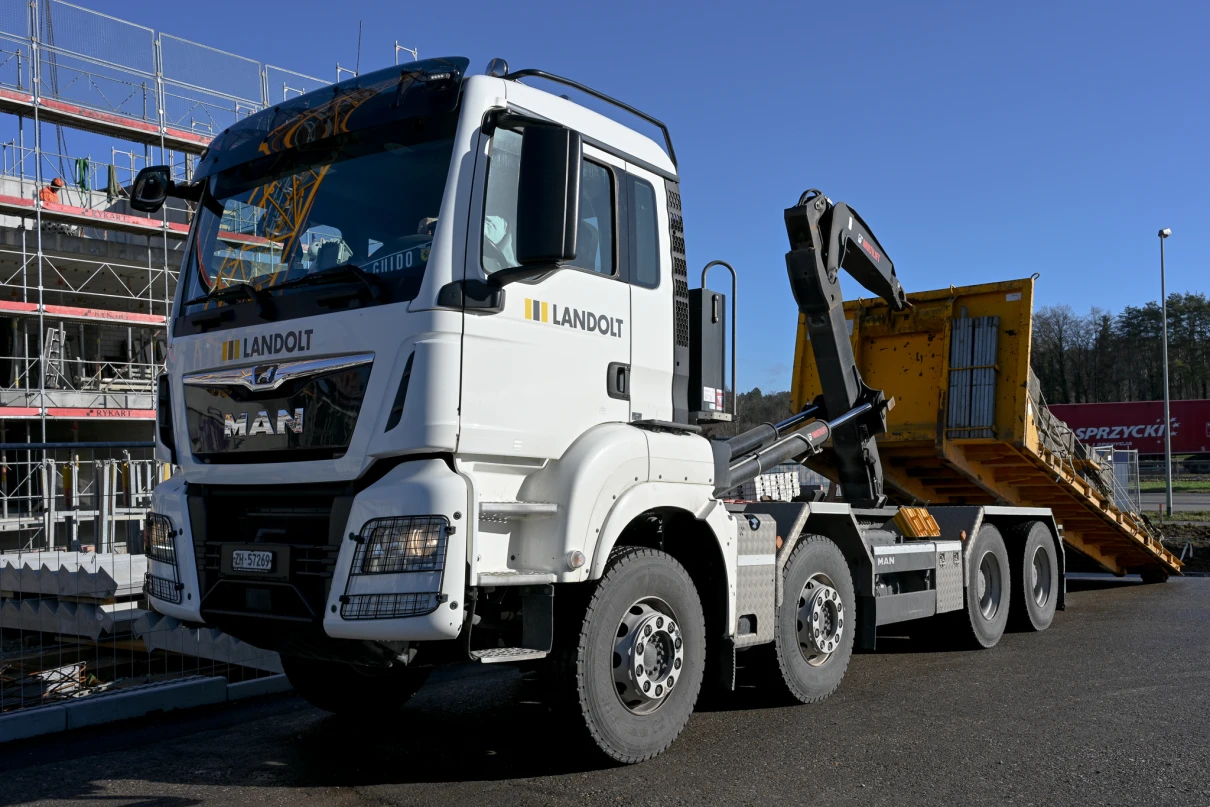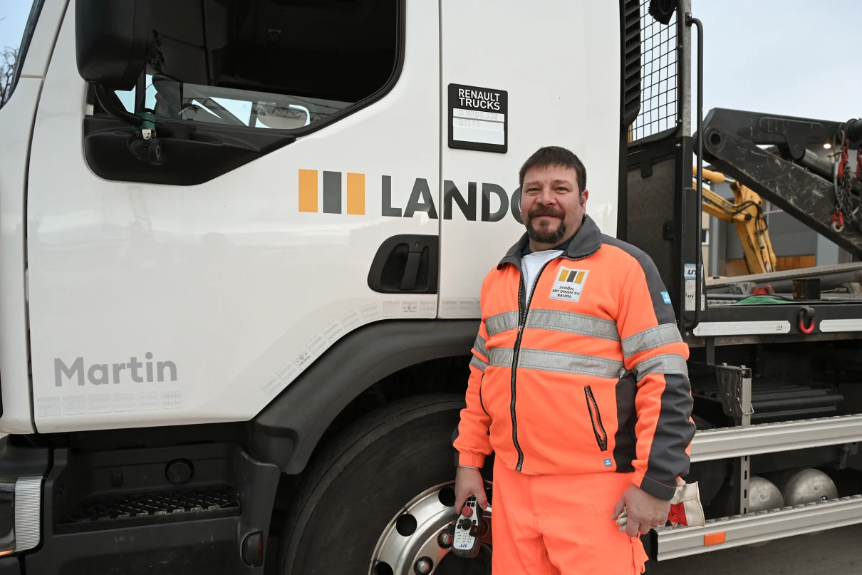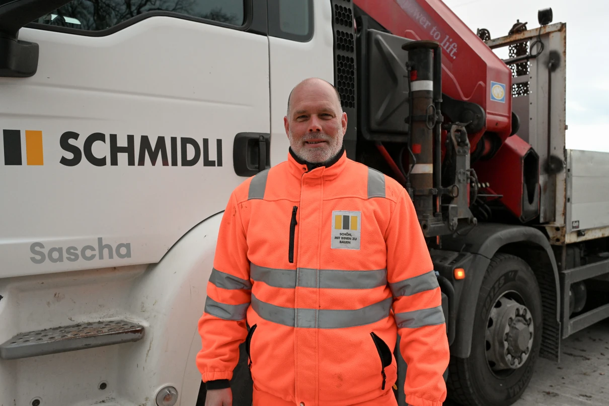 Sieben Chauffeure und deren Lastwagen sind täglich für unsere Baustellen im Einsatz. Unser Disponent Oliver regelt die Transporte und stellt sicher, dass die Fuhren pünktlich auf der Baustelle sind.