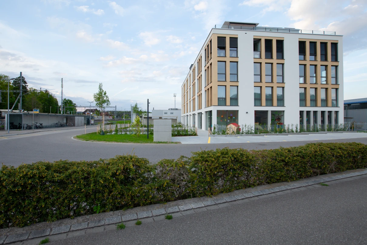 Direkt neben dem Bahnhof Hüntwangen durften wir die Hochbau- sowie die Fassadenarbeiten für das sehenswerte Wohn- und Gewerbehaus «Zentrum Rafzerfeld» ausführen. Das Gebäude verfügt über eine grosse Tiefgarage, grosszügige Gewerbeflächen, fünf Wohnstudios und drei Attikawohnungen. Zudem sind die zentrale Lage und der Anschluss an den öffentlichen Verkehr weitere Pluspunkte, welche es zu erwähnen gibt. Wir möchten uns bei allen Beteiligten für die gute Mitarbeit bedanken. Im speziellen möchten wir auch der Bauherrschaft, der Gewerblichen Baugenossenschaft Rafz und den Schmidli Architekten + Partner für die angenehme Zusammenarbeit danke sagen.