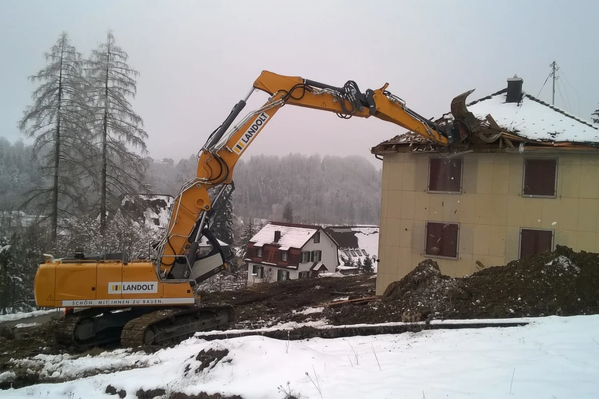 Für die geplante Terrassenhaus-Siedlung in Turbenthal an sonniger Südhanglage wurde ein bestehendes Mehrfamilienhaus abgebrochen.