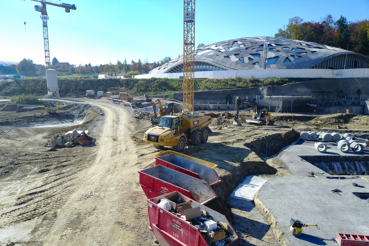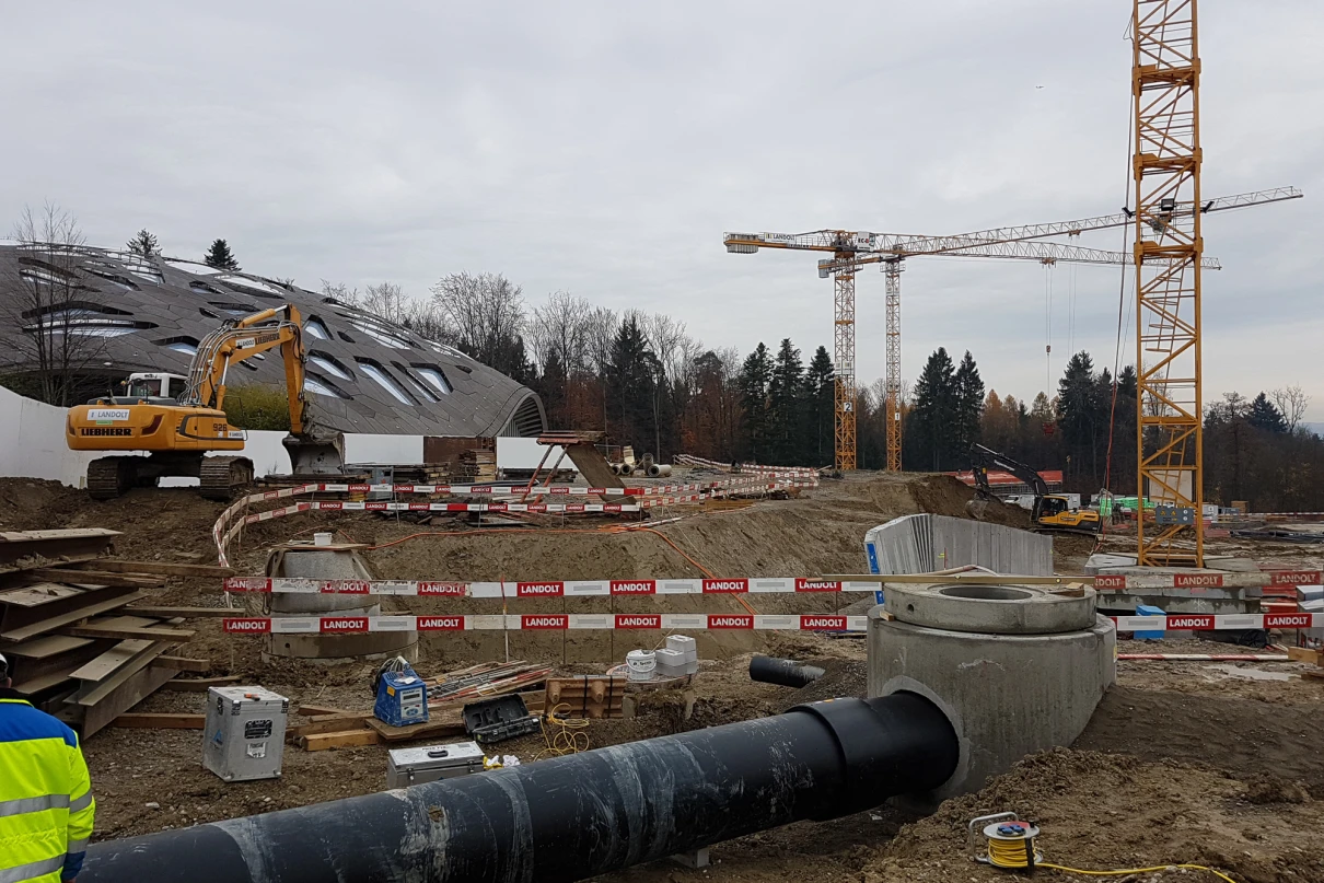Der Rohbau dieses besonderen Ortes besteht aus einer soliden Stahlbetonkonstruktion. Hohe Wandscheiben wurden betoniert, einige von ihnen mit einer markanten Neigung, um im Endzustand die Form von Kunstfelsen anzunehmen – eine natürliche Umgebung für unsere tierischen Freunde.