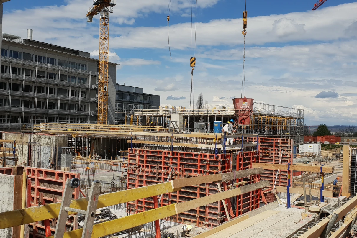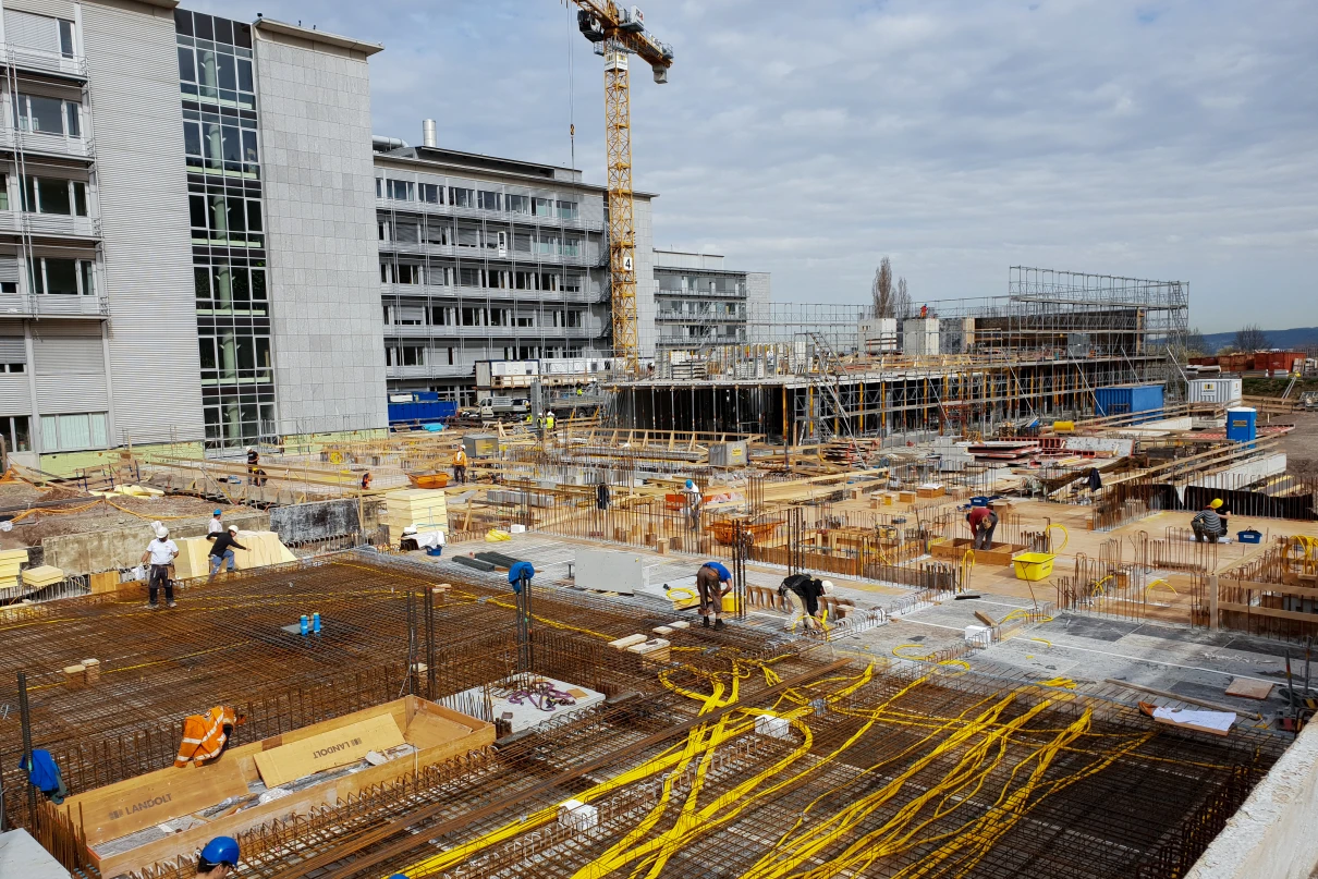 Die Laborgebäude Y19 und Y38 befinden sich auf dem Gelände der Universität Zürich. Sie schliessen im Osten an die Fakultätsachse des Gebäude Y17 an. Die Grundrissabmessung der beiden Labortrakte betragen jeweils ca. 58 m x 24 m, diejenige der Fakultätsachse ca. 57 m x 16 m (exkl. der Balkone). Die Neubauten wurden in Stahlbetonskelettbauweise mit einem Stützenraster von 7.20 m x 7.20 m / 8.40 m ausgeführt. Im Bauzustand wurde eine Fuge zum Bestandsbauwerk Y17 offengehalten, um Setzungen des Neubaus im Anschluss zu vermeiden. Diese Setzungsfuge wurde nach Erstellen des Rohbaus geschlossen. Die Vertikallasten wurden über vorfabrizierte Stahlbetonstützen sowie Wandscheiben und Kerne aus Beton abgetragen. Die Fluchttreppenhäuser TH 3 und TH 4 sowie Bereich der Fakultätsachse wurden in Sichtbeton Typ 2.1 ausgeführt. Abdichtungssystem gelbe Wanne (Drytech AG).